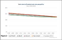 Le campagne di prevenzione oncologica contro il fumo di sigaretta e le campagne informative per il potenziamento dello screening oncologico hanno fatto registrare una positiva diminuzione del numero di fumatori (Figura 2) e una maggiore adesione alle campagne di screening oncologico organizzate per contrastare tre dei tumori più frequentemente diagnosticati, ovvero il carcinoma mammario (Figura 3A), il carcinoma colorettale (Figura 3B) e il carcinoma della cervice uterina (Figura 3C).