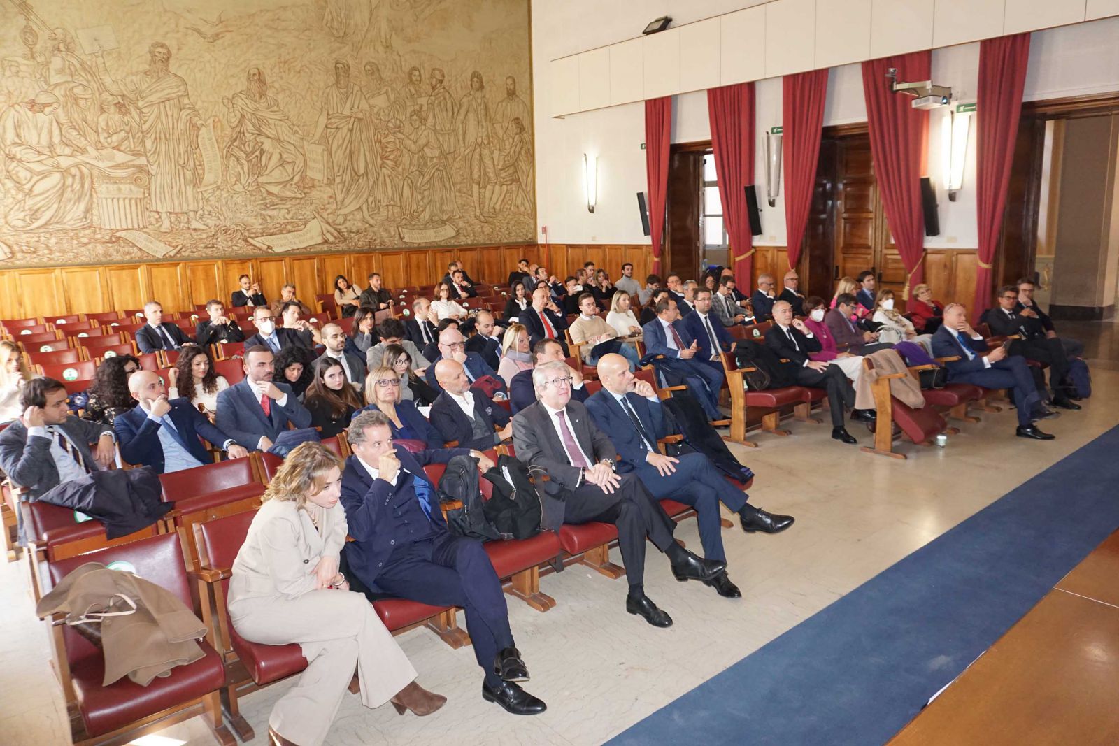 In foto gli esperti del settore presenti nell’aula magna del Dipartimento di Economia e Impresa
