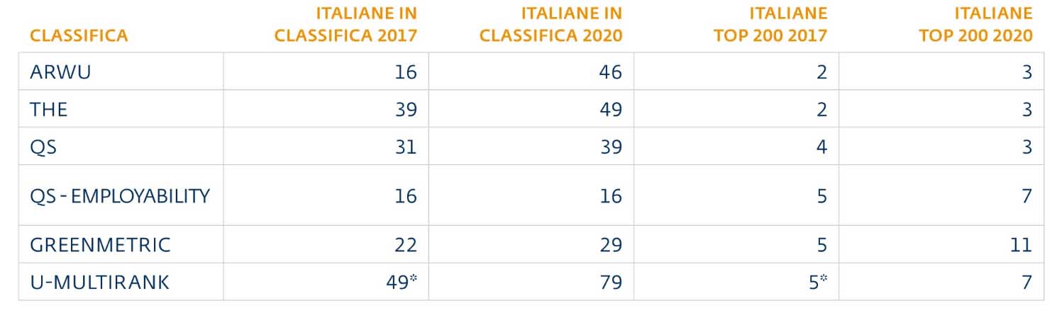 È online il Report della CRUI sui ranking internazionali. Il volume racconta i 3 anni di attività del Gruppo di Lavoro a cui hanno partecipato 68 università con l’obiettivo di aumentare il numero di atenei italiani presenti nelle classifiche internazionali e migliorare il posizionamento complessivo del sistema universitario nei ranking. Obiettivo pienamente centrato ed evidenziato dai numeri: 85 università italiane in più nelle 6 classifiche considerate e 11 in più nelle prime 200 posizioni.