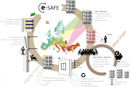 L’idea progettuale che sta alla base di e-SAFE è incentrata su un sistema innovativo per la riqualificazione combinata sismica, energetica ed architettonica degli edifici esistenti: tale sistema intende combinare obiettivi di risparmio energetico e di sicurezza antisismica, ma anche maggiore attrattività estetica e funzionale, comfort interno, tempi e costi di realizzazione ridotti, riduzione dei disagi ai residenti durante i lavori, soluzioni di finanziamento accessibili e modelli di business innovativi. Tutti questi fattori renderebbero il sistema proposto competitivo nel mercato europeo delle costruzioni, in vista del raggiungimento degli obiettivi climatici ed energetici a lungo termine.