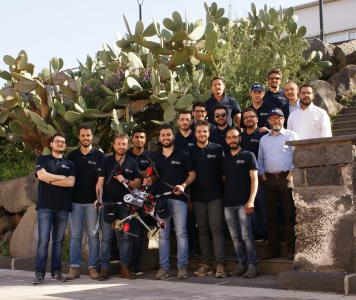 Il drone catanese è stato realizzato da docenti, dottorandi e studenti del dipartimento di Ingegneria elettrica elettronica e informatica (Dieei) e del dipartimento di Matematica e Informatica (Dmi), supportati dal System Lab di STMicroelectronics e dall’ing. Nunzio Abbate, dalla Micron Foundation, da Etnamatica, Kevin Shurter e Oranfresh. Il team era coordinato dai docenti Giovanni Muscato con gli assegnisti Luciano Cantelli e Carmelo Donato Melita ed il dottorando Dario Guastella (gruppo di Robotica del Dieei), Corrado Santoro con il neolaureato Fabio D’Urso (gruppo di Sistemi autonomi del Dmi), Sebastiano Battiato e Giovanni Maria Farinella (Iplab, gruppo di Computer Vision del Dmi), con il supporto del gruppo del prof. Gianluca Cicala (Dicar) che ha messo a disposizione i materiali innovativi e le stampe 3D di ultima generazione per la realizzazione di alcune componenti fondamentali dei droni.