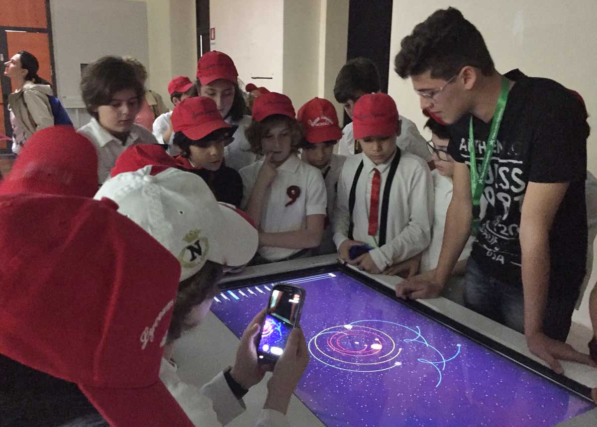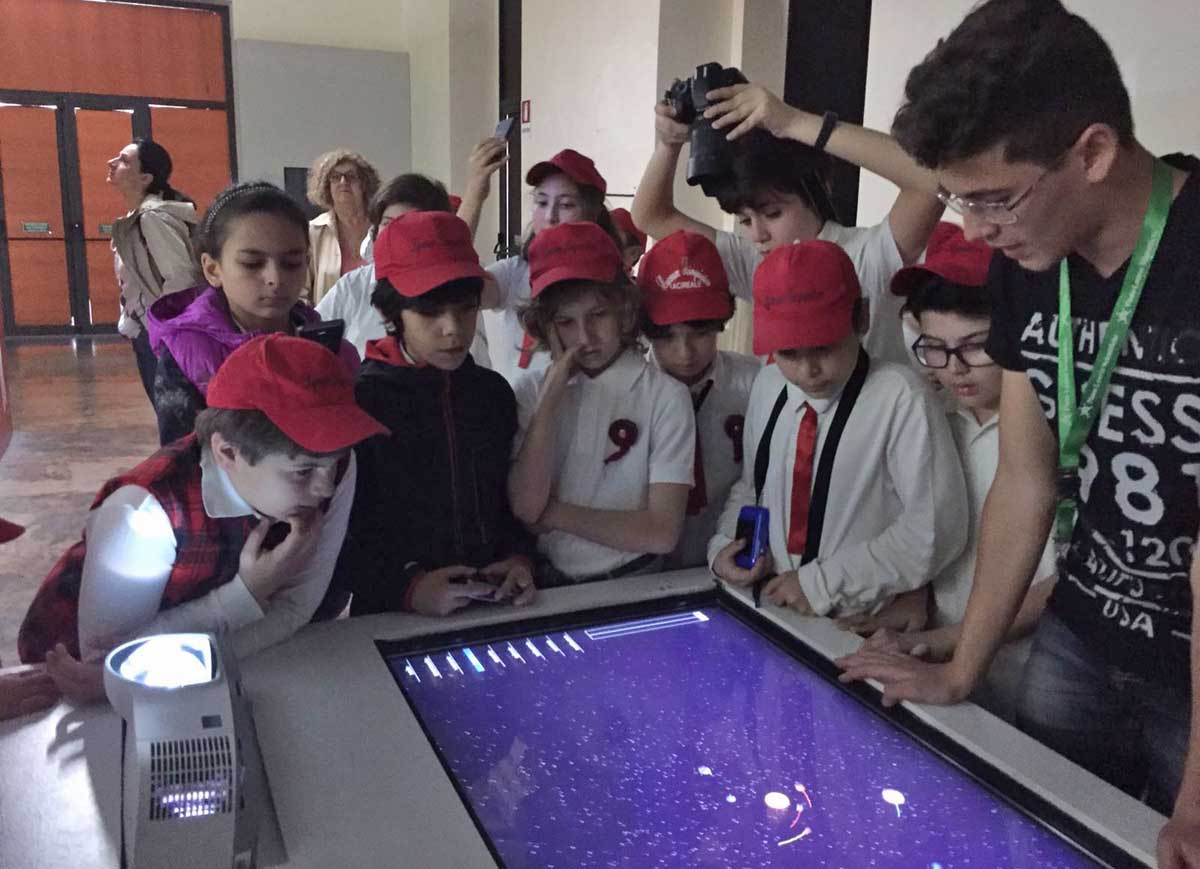 Gli studenti, formati per l’occasione dalla docente Roberta Raciti, esperta in fruizione dei beni culturali e in comunicazione scientifica, hanno guidato oltre 600 alunni delle scuole di ogni ordine e grado, evidenziando il messaggio fondamentale della mostra, ovvero come anche l’errore sia parte integrante del processo di conoscenza, attraverso un percorso espositivo che ha previsto attrazioni come un gioco interattivo sul Sistema solare, il Muro delle balle antiche, la videoinstallazione artistica che racconta la scienza dell’osservazione del cielo dalle antiche civiltà al medioevo, un’installazione interattiva sul bosone di Higgs. E ancora l’allestimento che racconta l’incredibile storia della ricerca delle onde gravitazionali e che ha permesso agli studenti di produrre con i propri movimenti onde gravitazionali virtuali.