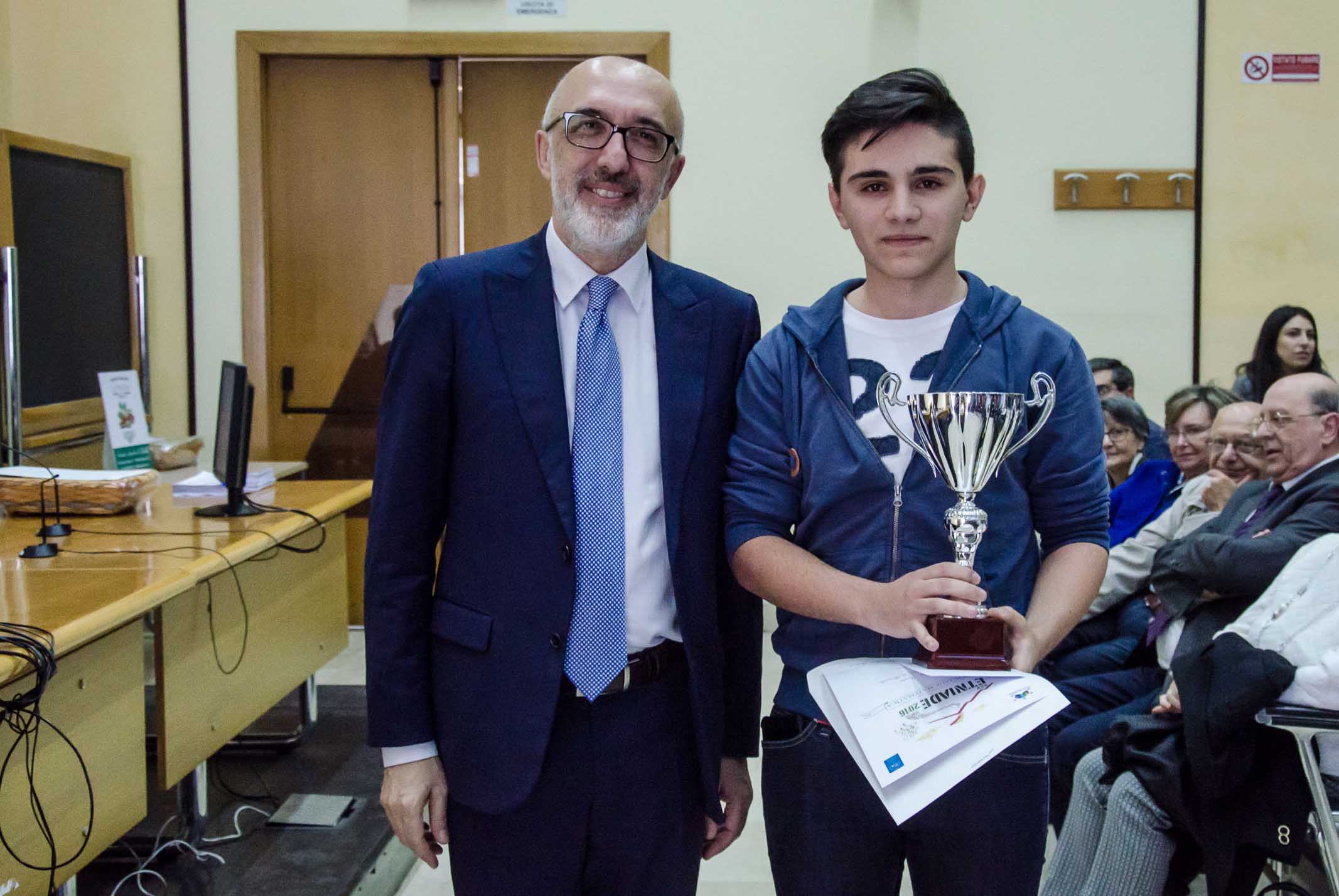Sul podio anche Alessandro Greco (89,93) della II C del liceo scientifico “Archimede” di Acireale e, ex aequo, Paolo Mastroianni della I D del liceo scientifico “Farinato” di Enna e Nicolò Mazzola (89,91) della I D del liceo “Principe Umberto” di Catania.