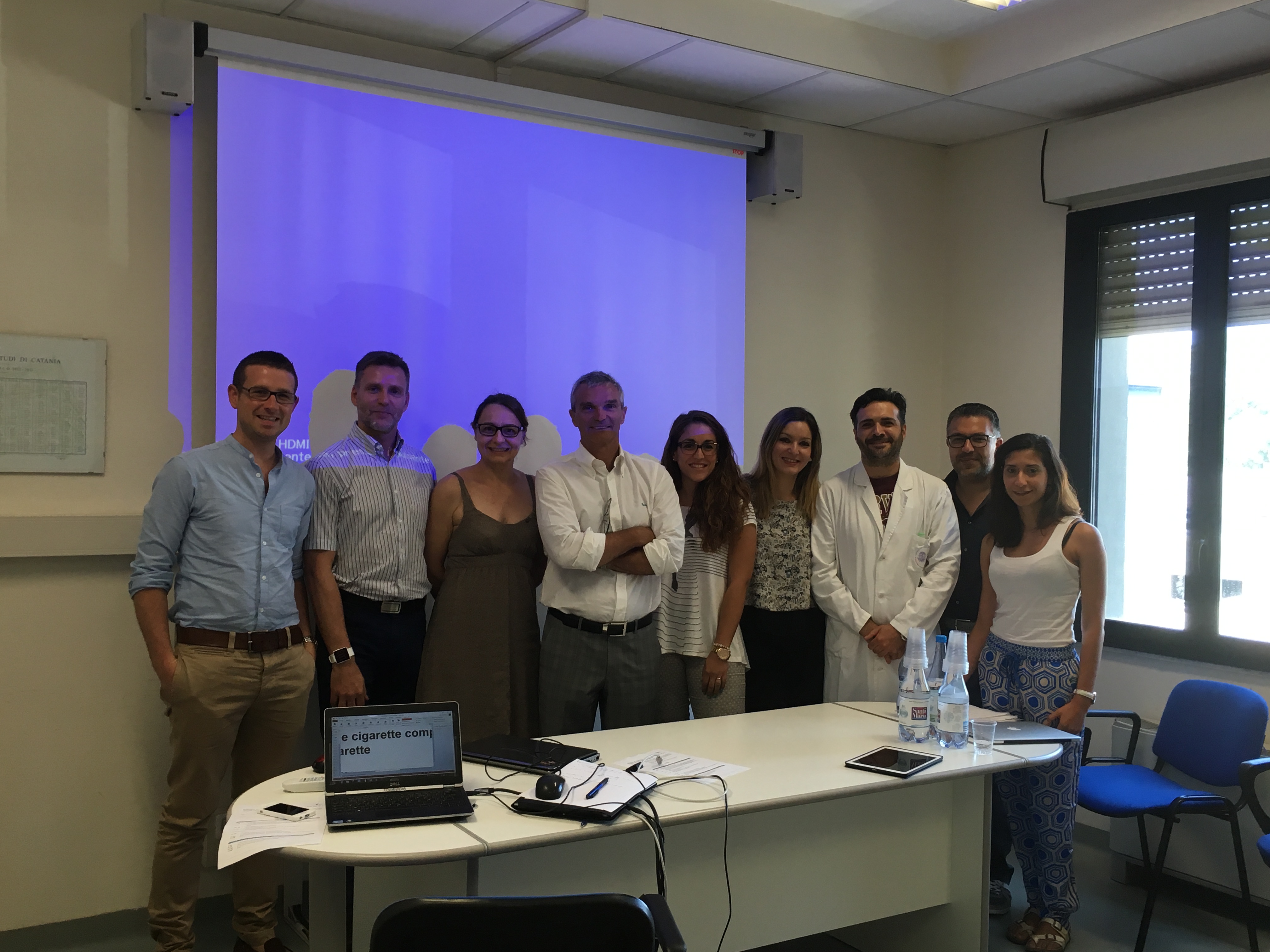 La delegazione composta da Xavier Cahours e Beatrice Teillet (Francia), Grant O'Connel (Regno Unito), Stefan Biel (Germania), provenienti da dipartimenti Ricerca e Sviluppo di aziende straniere del settore e-cig è stata accolta dallo staff del Centro che ha sede al Policlinico “Rodolico” di Catania (Pasquale Caponnetto, Marilena Maglia, Massimo Caruso, Daniela Saitta, Rosalia Emma) e ha preso parte a una ‘full immersion’ dedicata ai risultati prodotti nella ultima serie di sperimentazioni condotte su sigarette elettroniche e alla loro diffusione. “Il centro dell’Università etnea – ha osservato il prof. Polosa – è diventato un punto di interesse nevralgico per la battaglia mondiale contro il fumo e per la ricerca internazionale. Stiamo lavorando per trovare soluzioni ad una delle piaghe del nostro tempo che miete milione di vittime ogni anno. Ci auguriamo che questo tipo di incontri possa essere foriero di future collaborazioni attraendo investimenti per nuovi progetti con i nostri dipartimenti”.