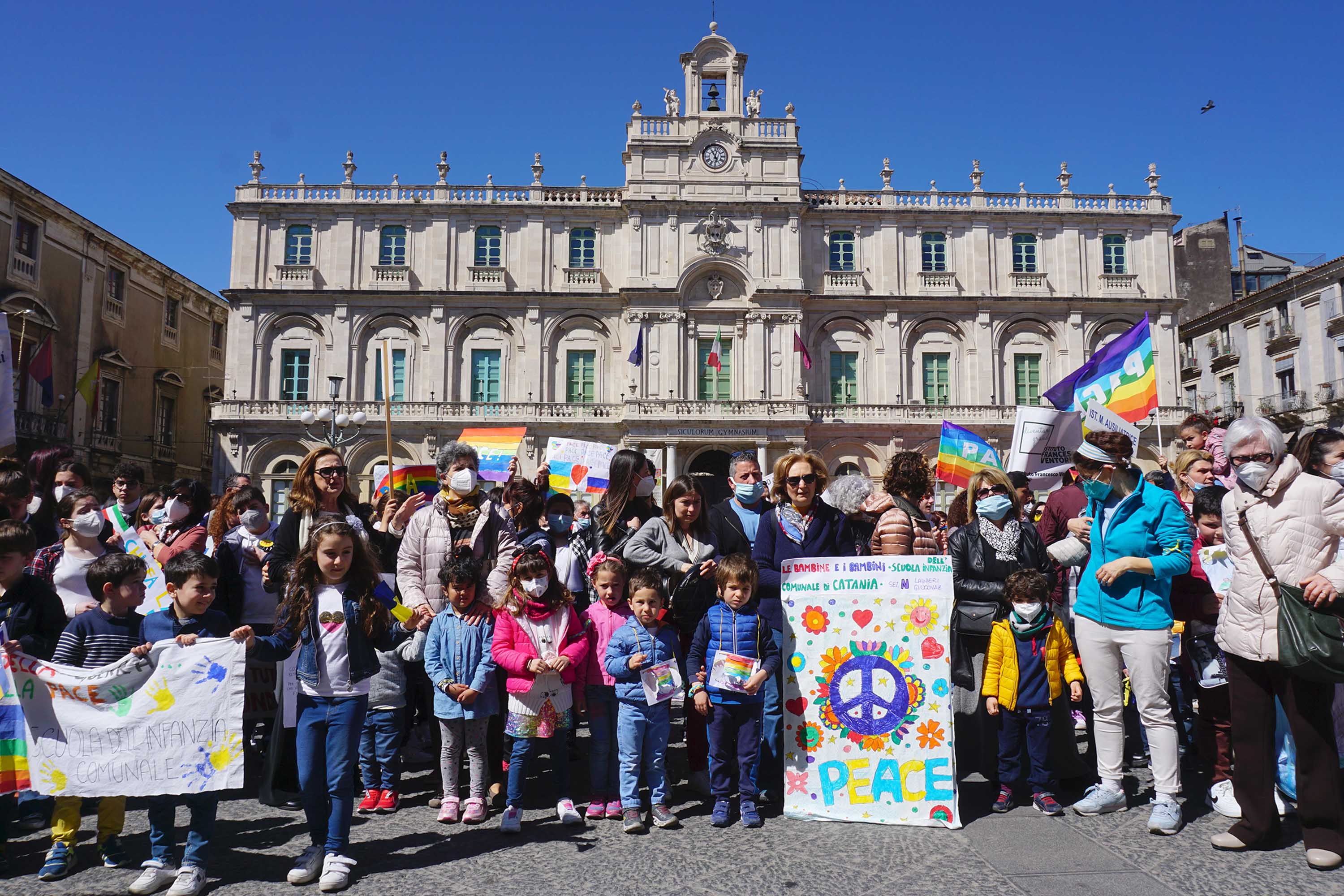 Il rettore Francesco Priolo ha letto il messaggio delle classi quinte sezioni A e B del Circolo didattico "Mario Rapisardi": «Dal buio della guerra ai colori della pace si alzi forte il grido per la pace. La guerra è inutile, c'è sempre qualcuno che vuole vincere, ma sarebbe meglio parlarne e accordarsi. Sarebbe la più grande vittoria. Nulla è perduto con la pace, tutto è perduto con la guerra».