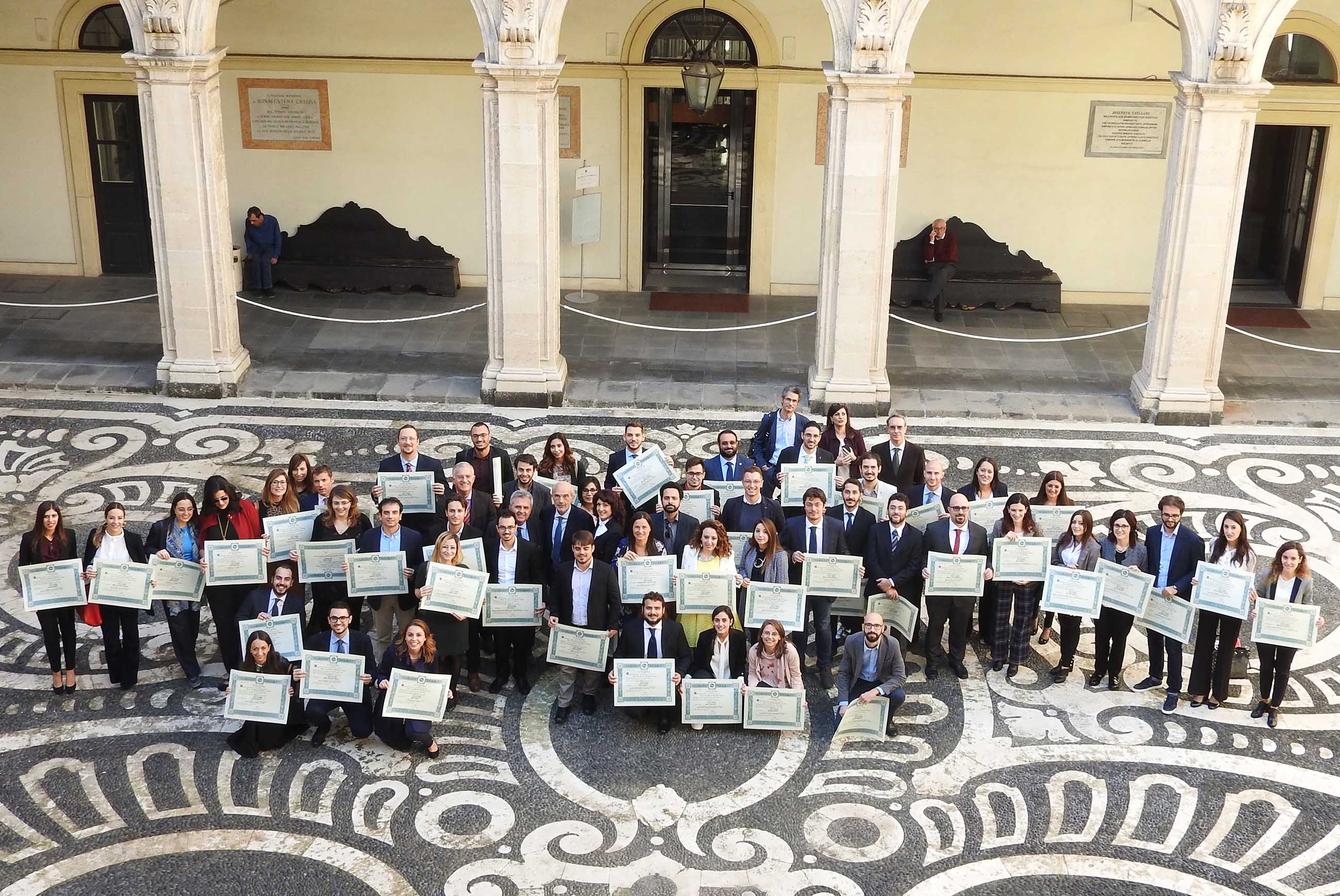 Presenti alla cerimonia il prof. Lorenzo Malatino, delegato del rettore alla Didattica post laurea, e il dirigente dell’area didattica di Ateneo Giuseppe Caruso, e i docenti Paolo Arena, Agata Di Stefano, Maria Grazia Grimaldi, Giovanni Russo e Salvatore Salomone, coordinatori dei dottorati.
