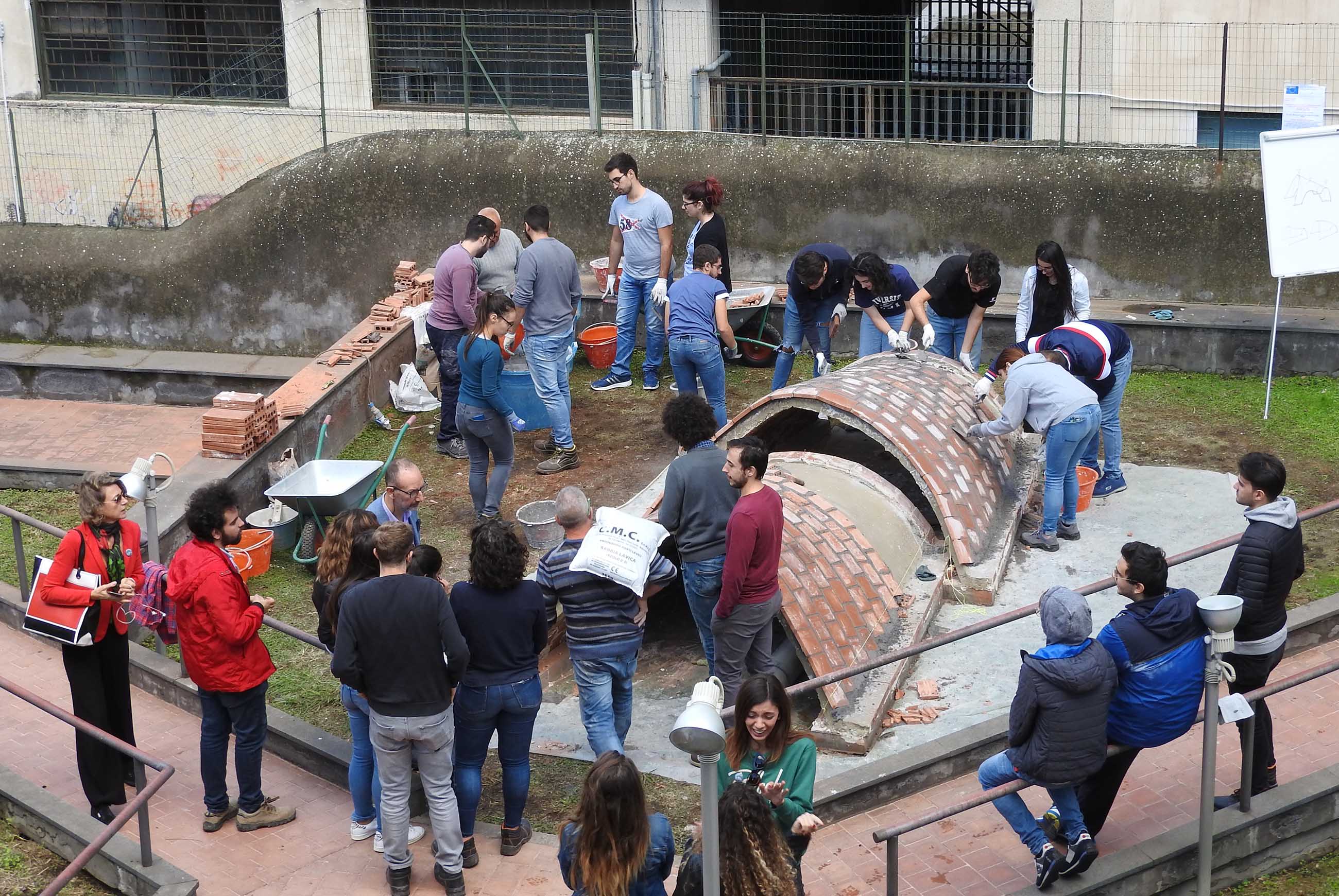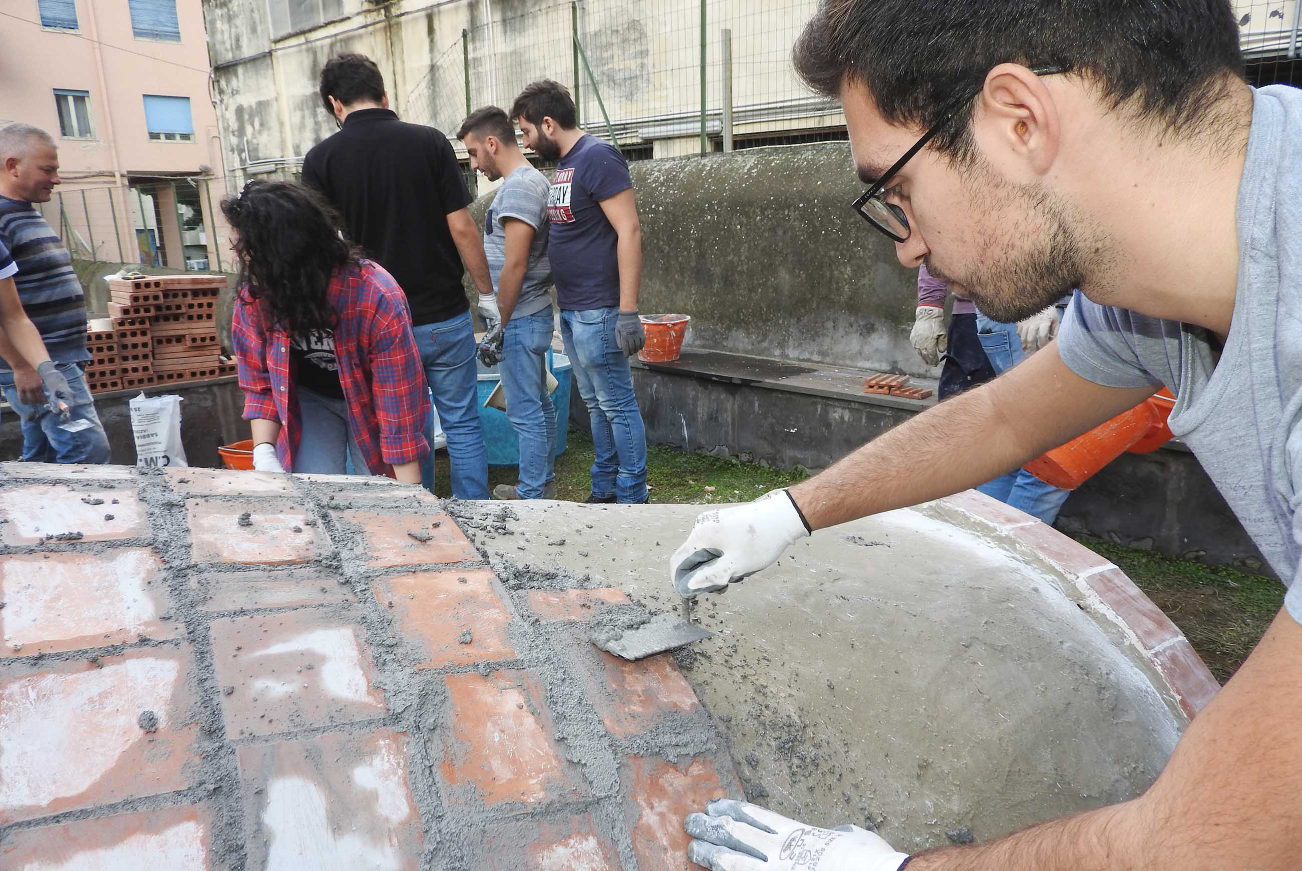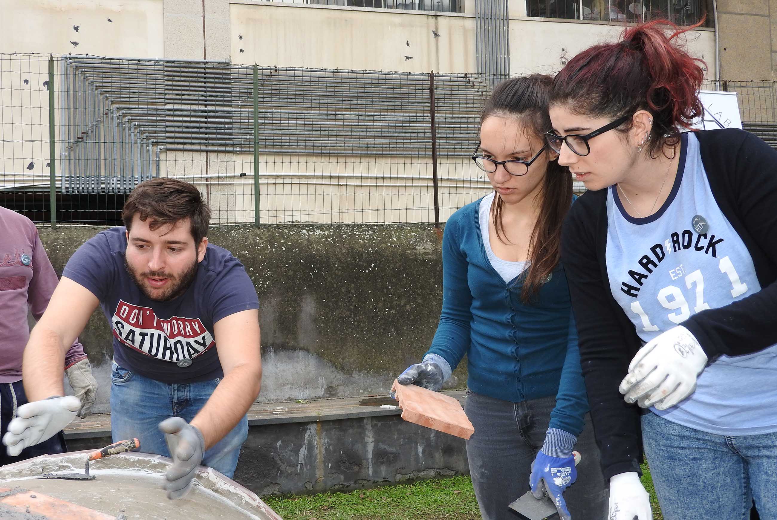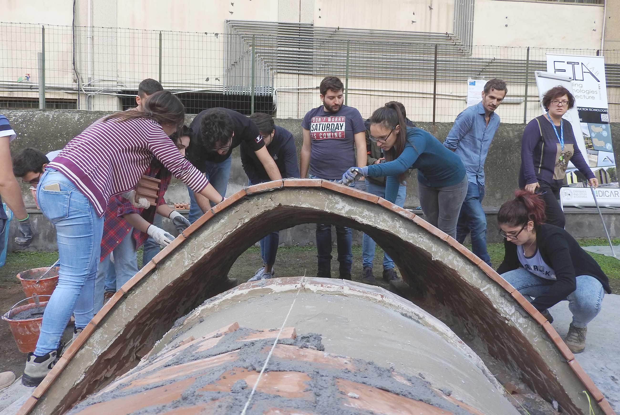 Dalla teoria alla pratica, con tanto di cazzuola e mattoni in mano, per realizzare due volte sperimentali in blocchi in laterizio forato a conclusione di un modulo di Architettura digitale nell'ambito del corso e delle attività laboratoriali di Architettura tecnica II del corso di laurea magistrale in Ingegneria Edile-Architettura.