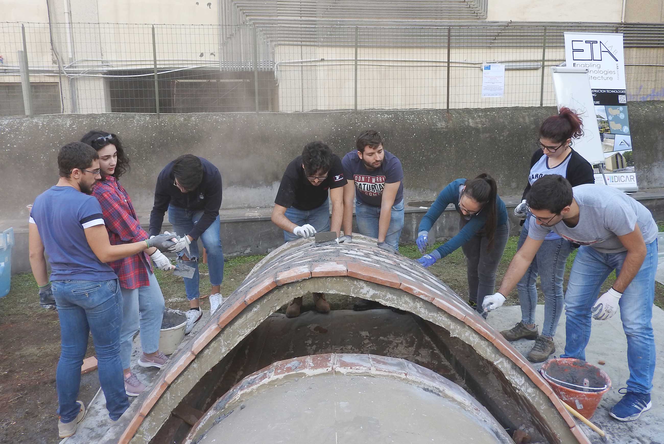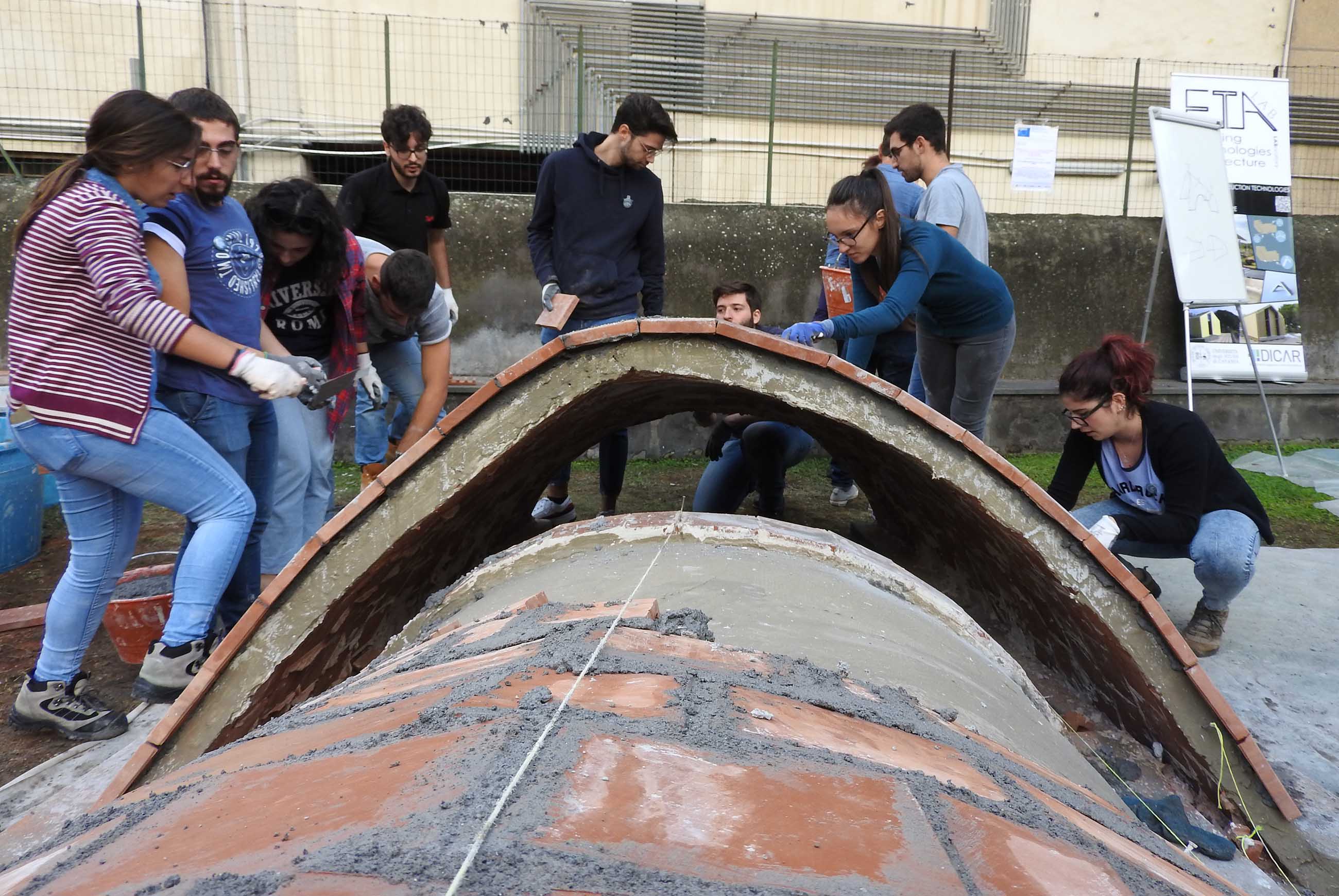 «Il progetto è stato realizzato dai ragazzi e reinterpretato in chiave moderna grazie al docente Garcia – ha spiegato il prof. Sapienza, che ha seguito la realizzazione insieme con il prof. Sciuto, il direttore del MuRa Maria Teresa Galizia, il direttore del Dicar Enrico Foti e la delegata del rettore all’Internazionalizzazione per l’ambito tecnico-scientifico Lucia Zappalà -. Gli studenti hanno costruito una volta a forma di cono utilizzando il laterizio, tipico della tradizione siciliana, e applicando la tecnica della volta Tabicada o a volte in folio, impiegata anche nella costruzione della celeberrima Sagrada Familia di Gaudì».