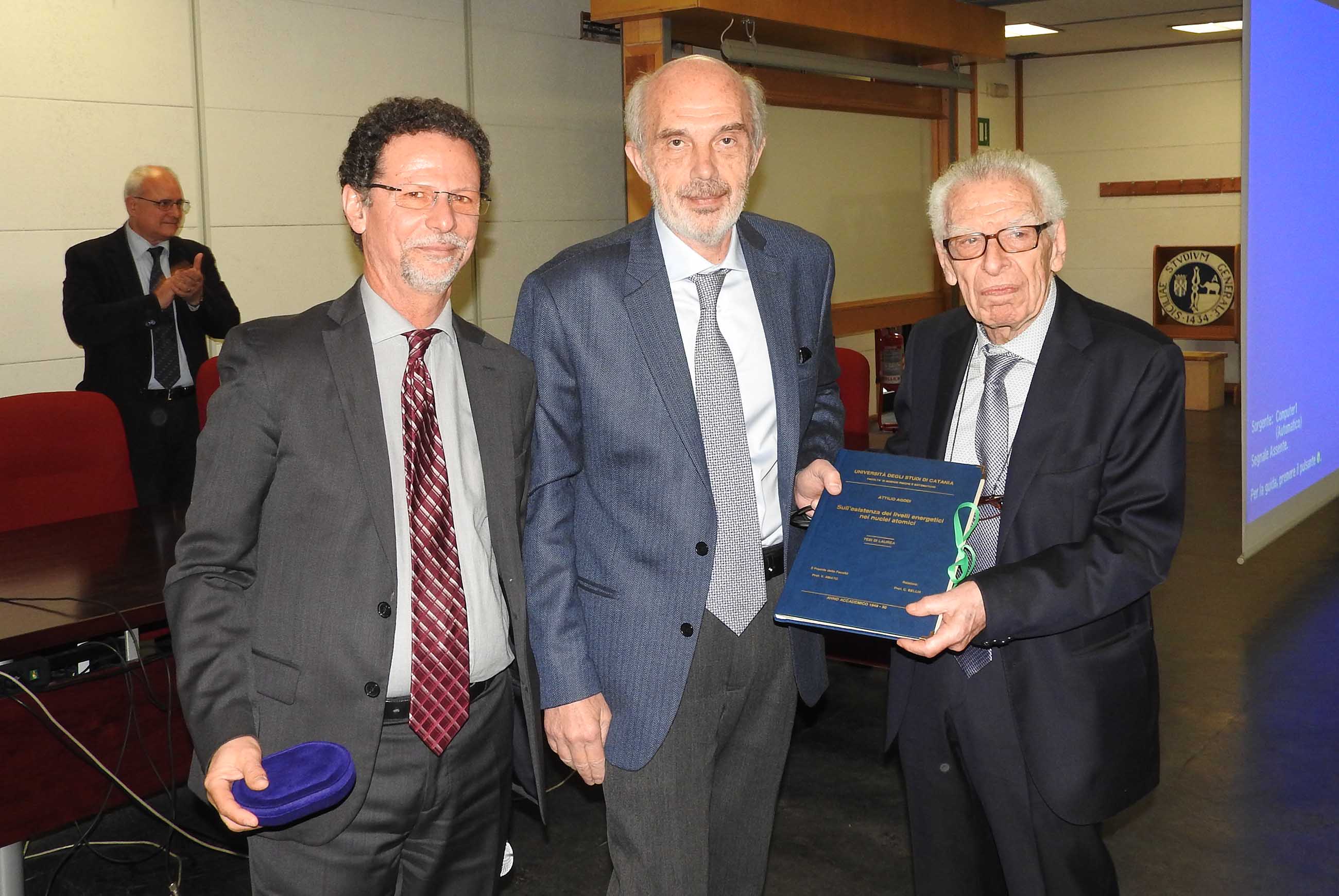Proprio il rettore – nell’aula magna del dipartimento di Fisica e Astronomia intitolato a Ettore Majorana, gremita di docenti e studenti e alla presenza dei familiari - ha poi consegnato al prof. Agodi l’originale della sua tesi di laurea in Fisica, dal titolo “Esistenza di livelli energetici nei nuclei atomici”, conseguita nell’anno accademico 1950-51.