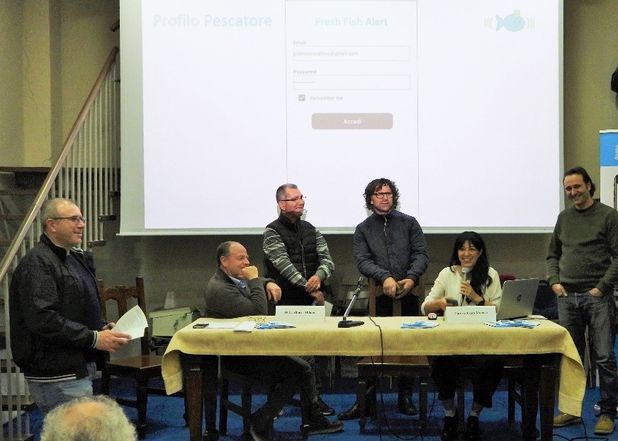 Il funzionamento dell’app Fresh Fish Alert è stato oggetto di dimostrazione nel corso del workshop che si è tenuto lunedì 16 dicembre nella parrocchia Santa Maria di Ognina di Catania, importante punto di riferimento dello storico borgo marinaro. È intervenuto al workshop il dott. Alfonso Milano, dirigente servizio 2 del Dipartimento della Pesca mediterranea della Regione Siciliana, confermando l’impegno del Dipartimento a sostenere ulteriormente l’iniziativa.