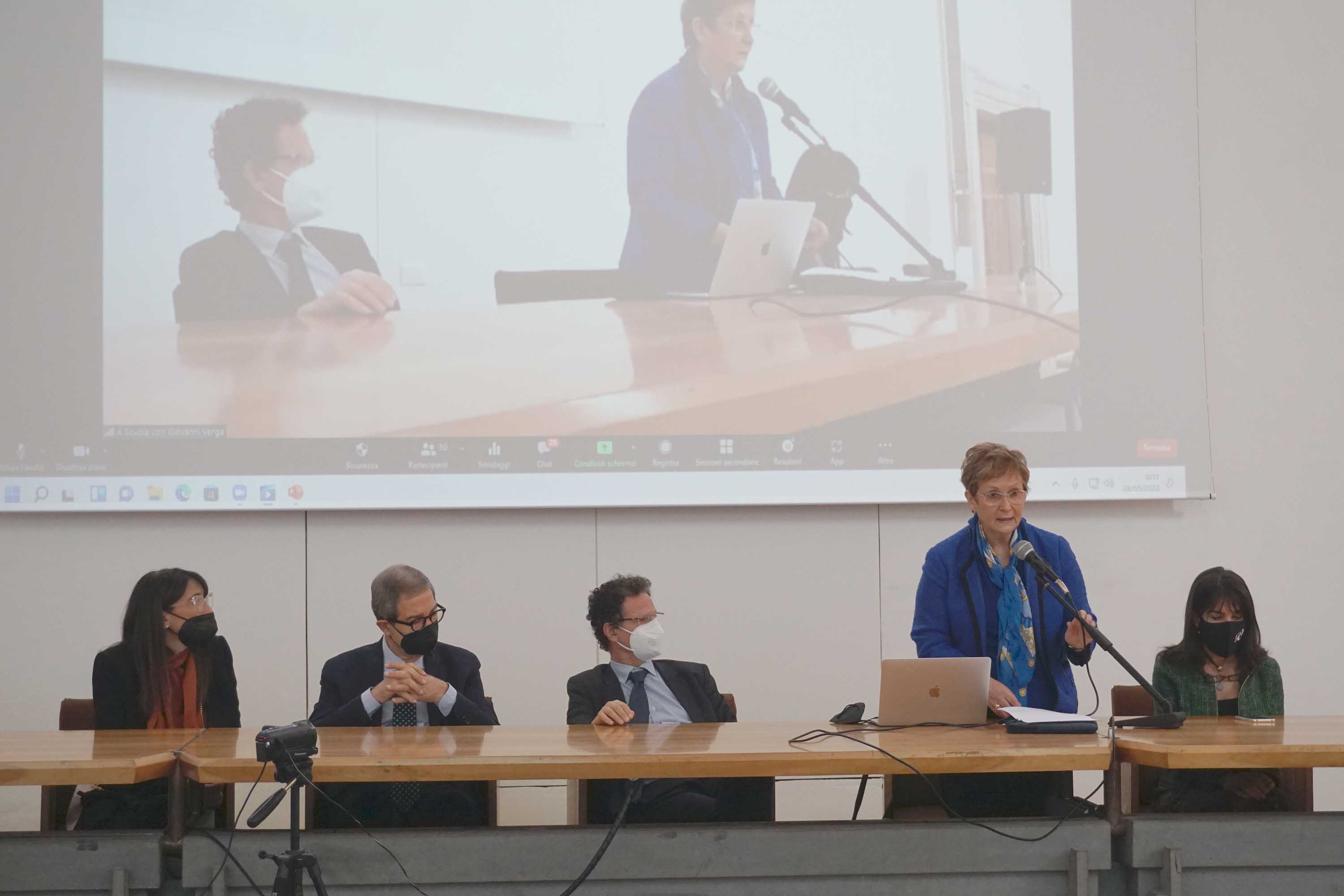 Nel corso dei lavori sono intervenute anche la docente Marina Paino, direttrice del Dipartimento di Scienze umanistiche, che ha sottolineato «il ruolo fondamentale rivestito dall’ateneo catanese nel rapporto con le scuole e che la giornata di oggi rappresenta solo una tappa di quel lungo percorso avviato da diversi anni in questa direzione» e, inoltre, «l’importanza del Verga e delle sue opere per gli studi e la formazione degli studenti degli istituti superiori e universitari».
