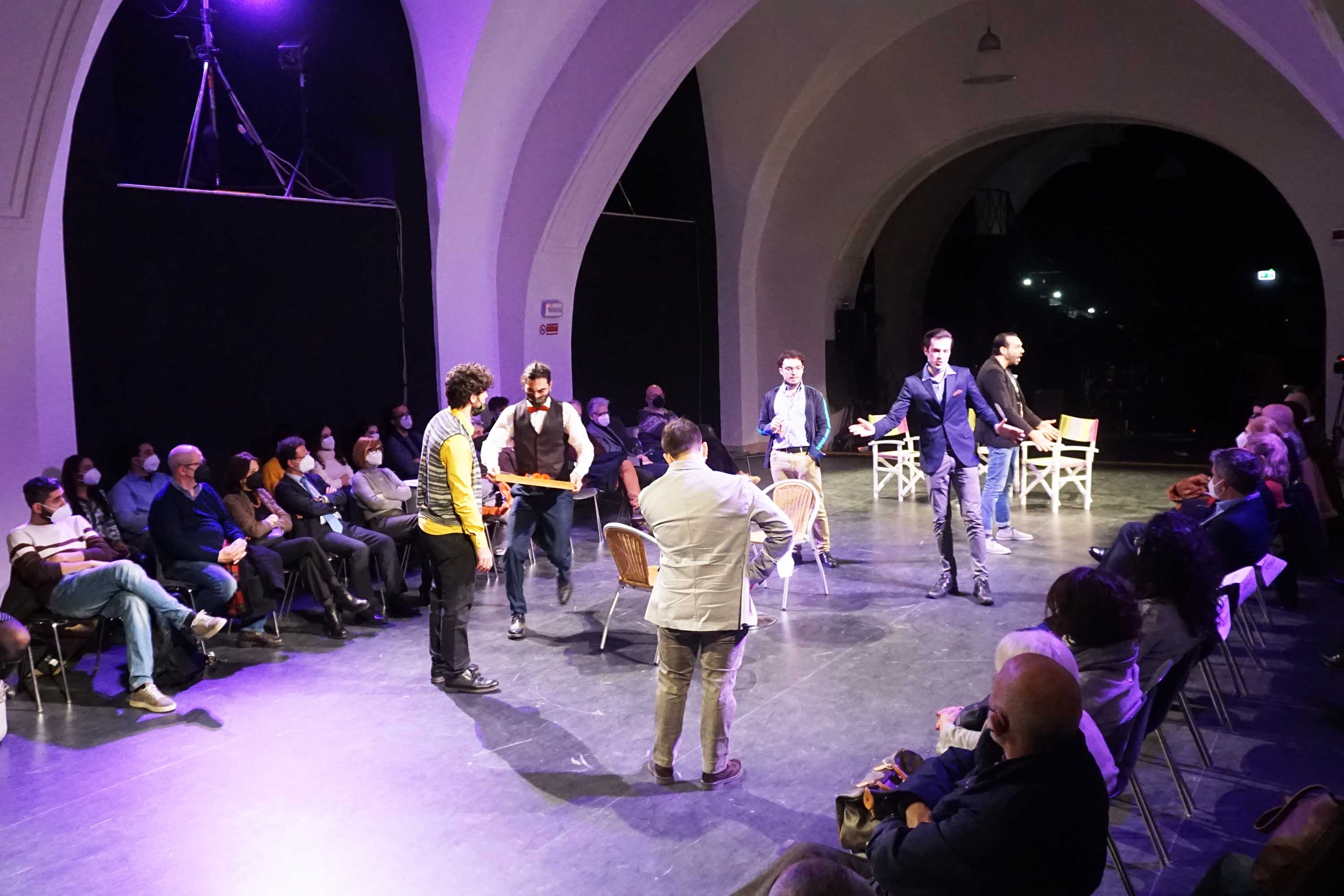 La “prima” della commedia “Il Divo” diretta da Elio Gimbo nell’ambito del laboratorio teatrale “Drammaturgie delle azioni fisiche”