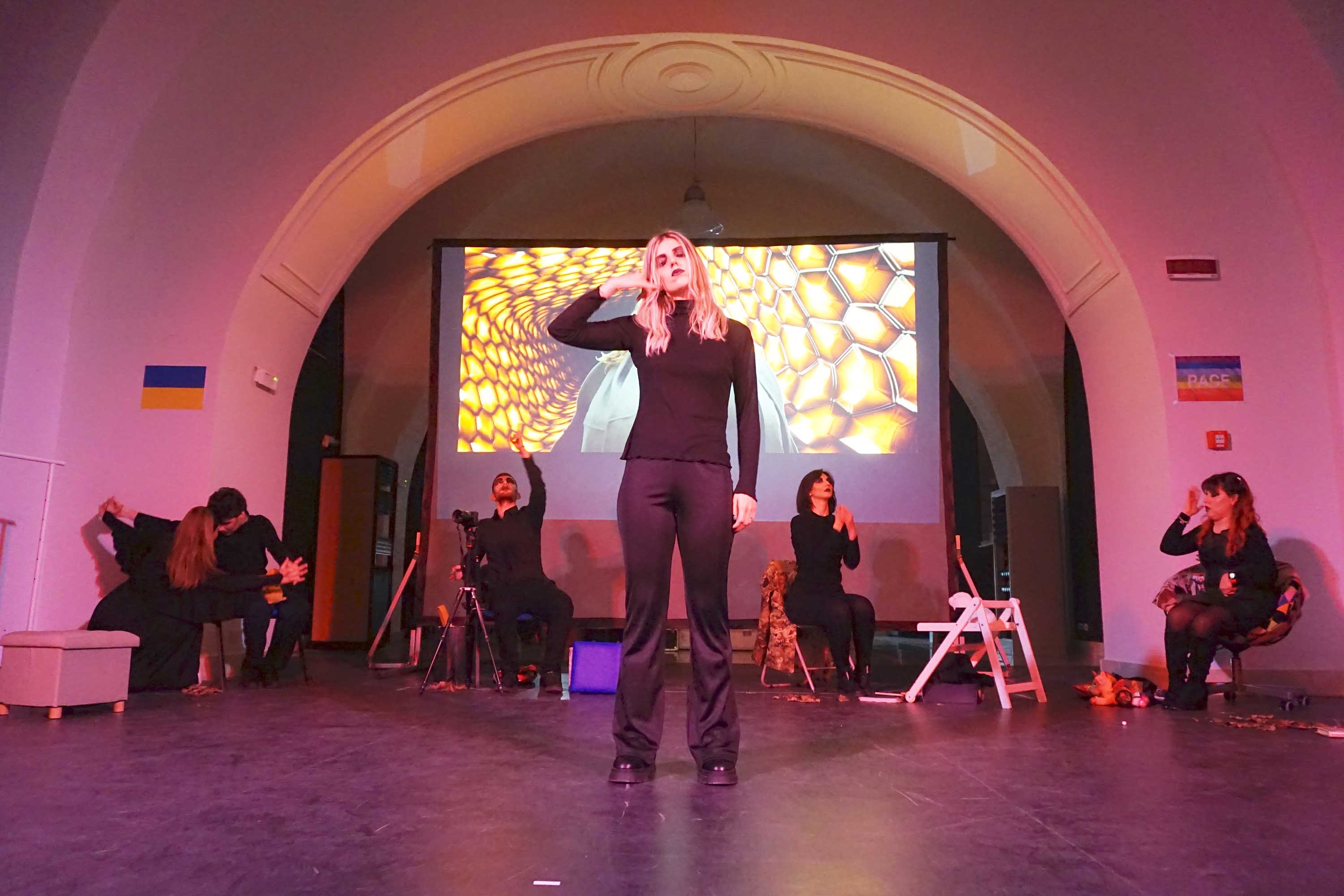 Un laboratorio che ha «permesso di far partecipare gli studenti in modalità mista con un continuo dialogo tra attori in presenza e altri “a distanza” alla ricerca continua di un linguaggio comune grazie anche alla Lis – spiega Ferrara -. I ragazzi del laboratorio, infatti, conoscono la Lis e hanno creato un proprio vocabolario con movimenti espressivi che fanno parte del loro vissuto e desideri».