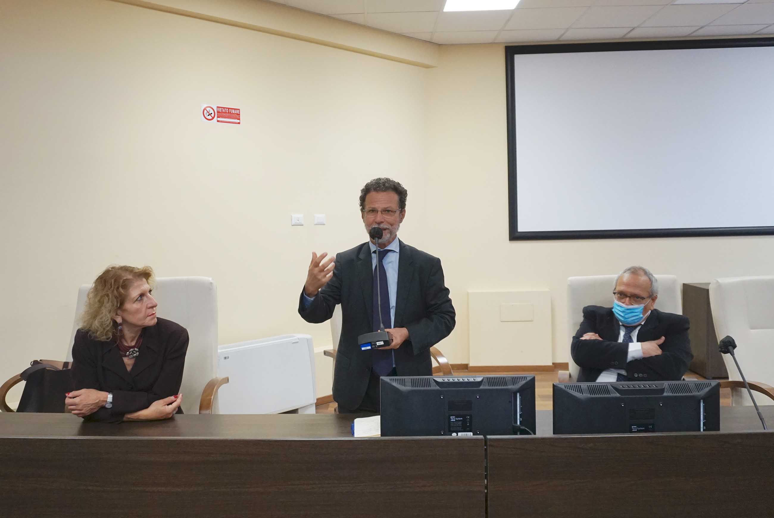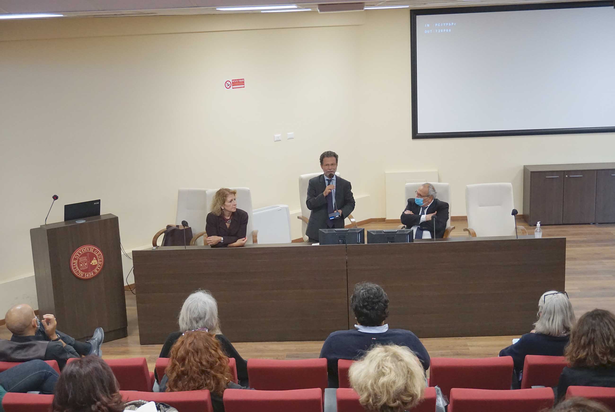 Nella seconda tappa il rettore Francesco Priolo ha incontrato i docenti, i ricercatori e il personale del Dipartimento di Scienze biomediche e biotecnologiche