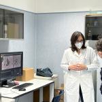 La visita è proseguita all’AO Universitaria Policlinico, dove il rettore Priolo è stato accolto dal prof. Pietro Castellino e dal prof. Carlo Vancheri che dirige il Laboratorio di ricerca di medicina respiratoria sperimentale, con i suoi studi di citofluometria, crioconservazione e biologia cellulare. La dott.ssa Mary Fruciano ha illustrato parte delle ricerche condotte nel laboratorio sulla fibrosi polmonare mostrando anche attraverso un invertoscopio dei fibroblasti vivi in coltura. La dott.ssa Elisa Gili ha descritto invece il funzionamento dei citofluorimetri e le possibilità di studio sulle malattie rare del polmone. Molto interessante anche la presentazione da parte di un gruppo di bioinformatici sugli studi del paziente virtuale, il digital twin, attraverso il quale si sta cercando di comprendere l’andamento di determinate patologie polmonari anche grazie a importanti collaborazioni con gruppi di ricerca stranieri. A conclusione della visita nei laboratori, il dott. Michele Massimino, assegnista di ricerca UNICT, ha descritto alcune delle attività del centro di oncologia sperimentale con particolare riferimento alla medicina di precisione per la cura dei tumori tiroidei.