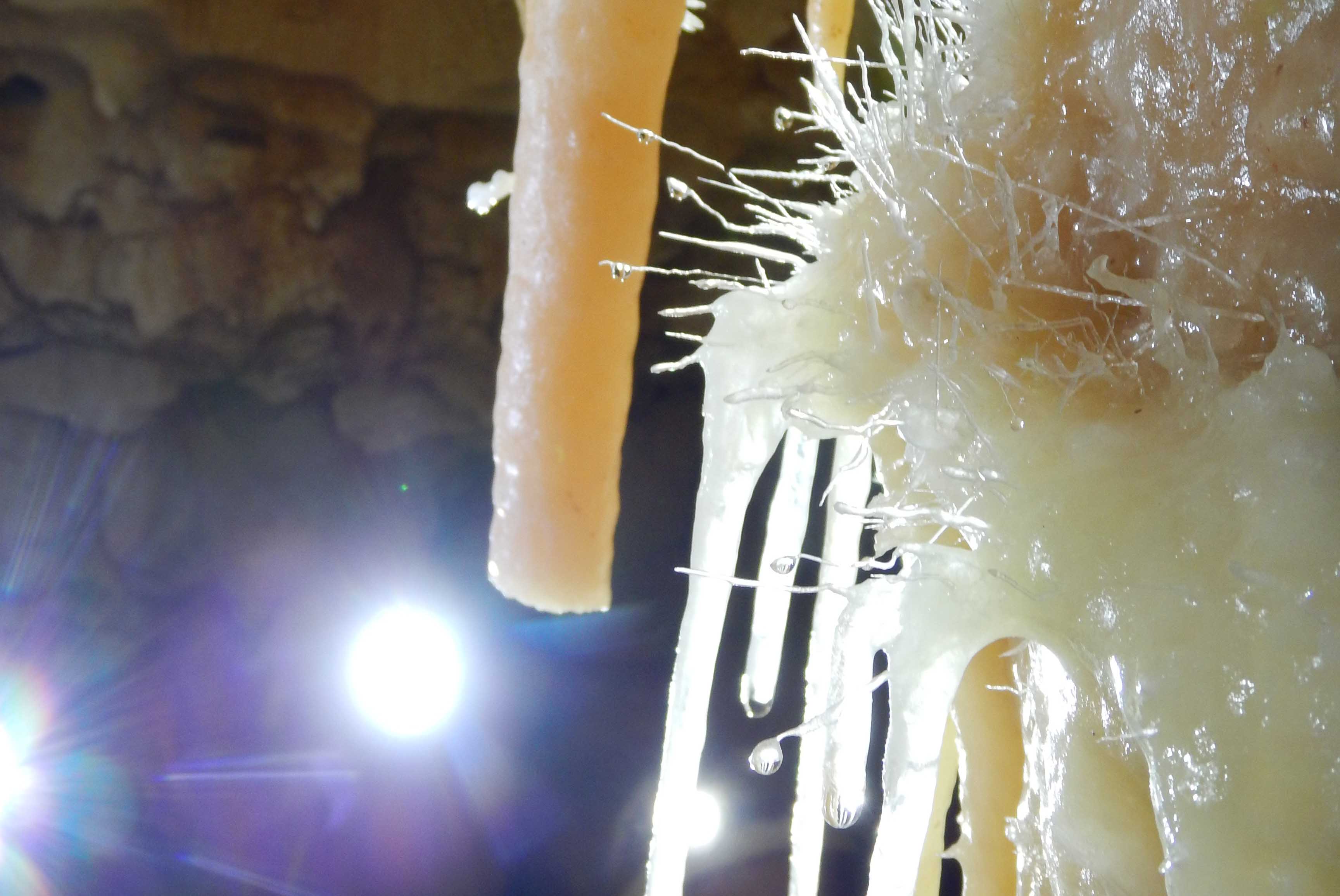 All’interno della grotta, scoperta casualmente nel 1948 e che si estende per 540 metri di lunghezza, i ricercatori dell’Università di Catania hanno illustrato le stalattiti “pelose”, anche di 100 mila anni di età, caratteristiche per i piccoli peletti di calcite, i particolari incontri tra le stalattiti e le stalagmiti oltre ai “padroni di casa”, l'isopode Armadillidium lagrecai Vandel e l’insetto troglobio Tychobythinus inopinatus, quest’ultimo scoperto proprio un anno fa.