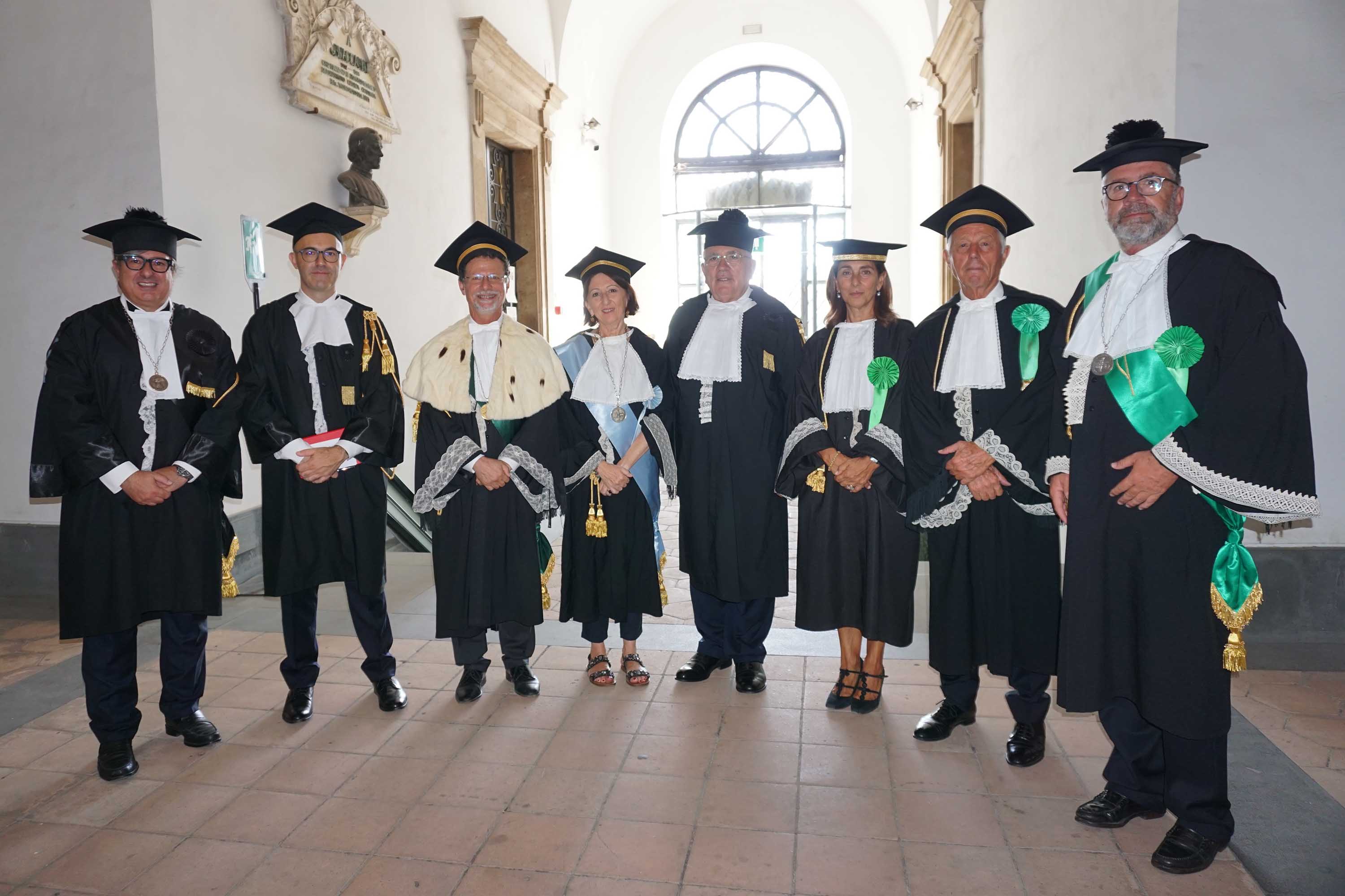 La cerimonia solenne nell’aula magna del Monastero dei Benedettini per la consegna del titolo accademico a due imprenditori ‘eccellenti’