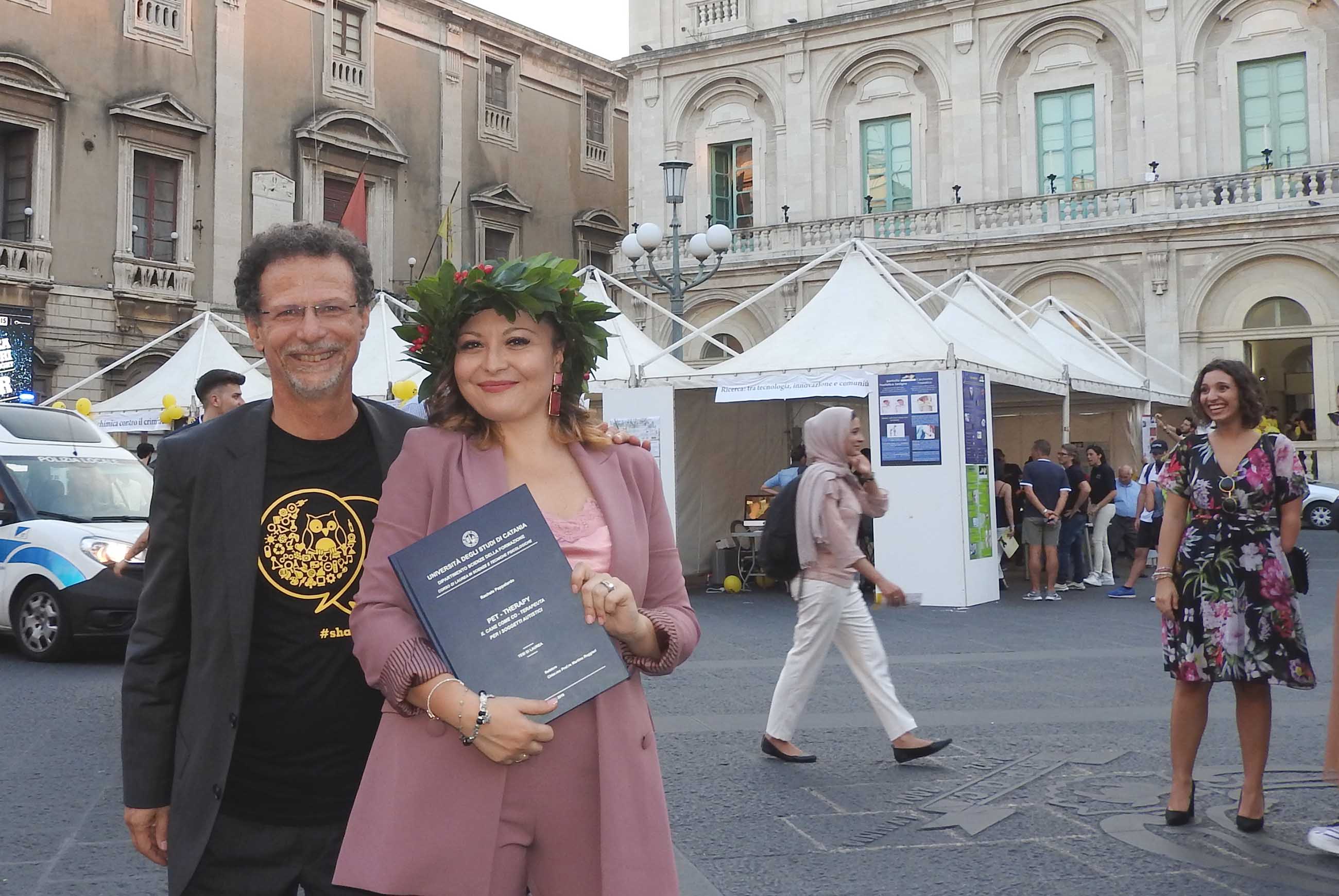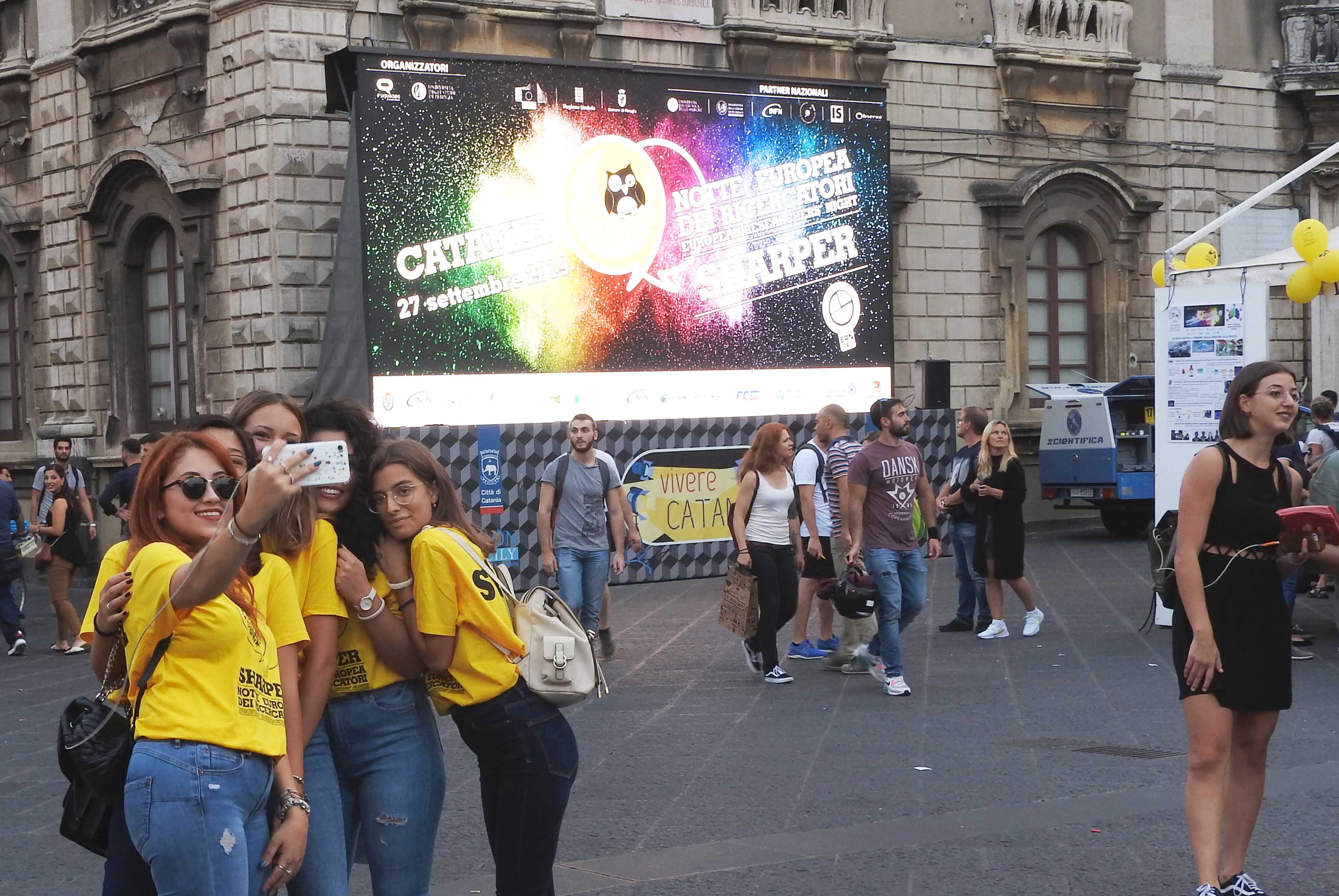 Quando la ‘movida’ incontra la Scienza, Catania – città universitaria dall’inizio del 1400 - celebra la Notte dei ricercatori, il più importante momento d’incontro tra la comunità scientifica e la comunità di persone che la ospita e la genera. Una vera e propria Festa, che ieri sera, in piazza Università, si è incrociata per un attimo con la festa personale che una studentessa di Psicologia, corona d’alloro in testa, celebrava danzando goliardicamente con i propri colleghi al centro della piazza. E il rettore Francesco Priolo ha interrotto il proprio giro tra i numerosissimi stand della piazza per un selfie augurale con la neo-laureata Rachele Pappalardo: “Entusiasmo, orgoglio, passione. E’ proprio questo che i nostri giovani, in occasioni come la Notte dei Ricercatori – ha ribadito il rettore –vogliono trasmettere ai tantissimi visitatori che vengono a scoprire tutto ciò che noi facciamo nei nostri laboratori, per offrire la consapevolezza che la Scienza è qualcosa di vicino, concreto, utile, fruibile e vantaggiosa per tutti”.