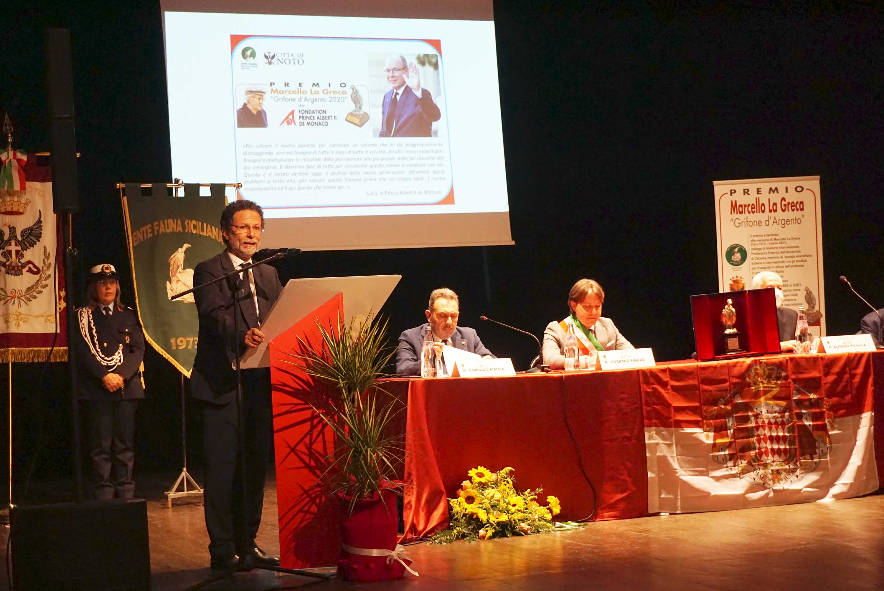 A consegnare il premio al Principe Alberto II di Monaco sono stati il sindaco di Noto Corrado Figura e il presidente dell’Ente Fauna Siciliana Alfredo Petralia.