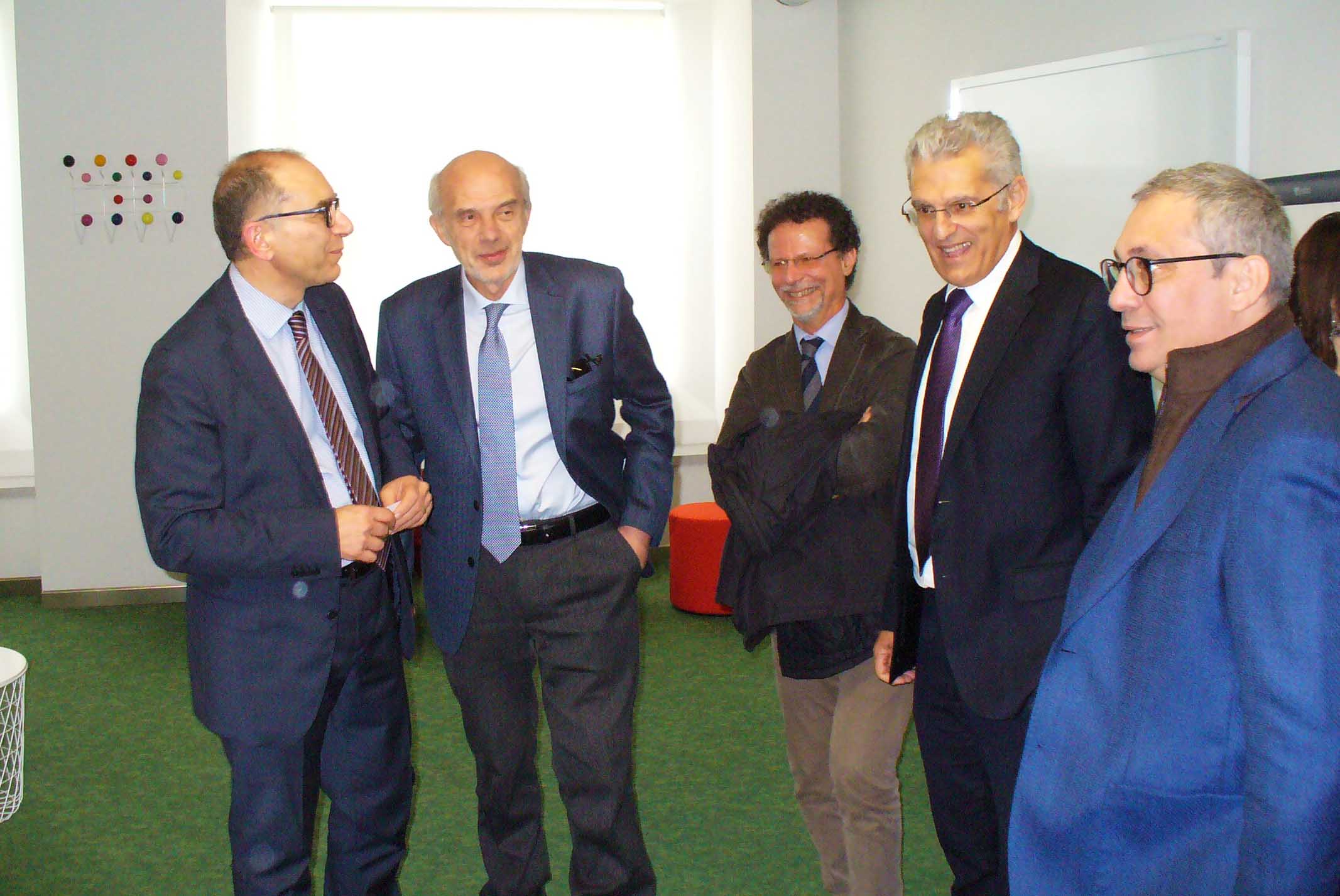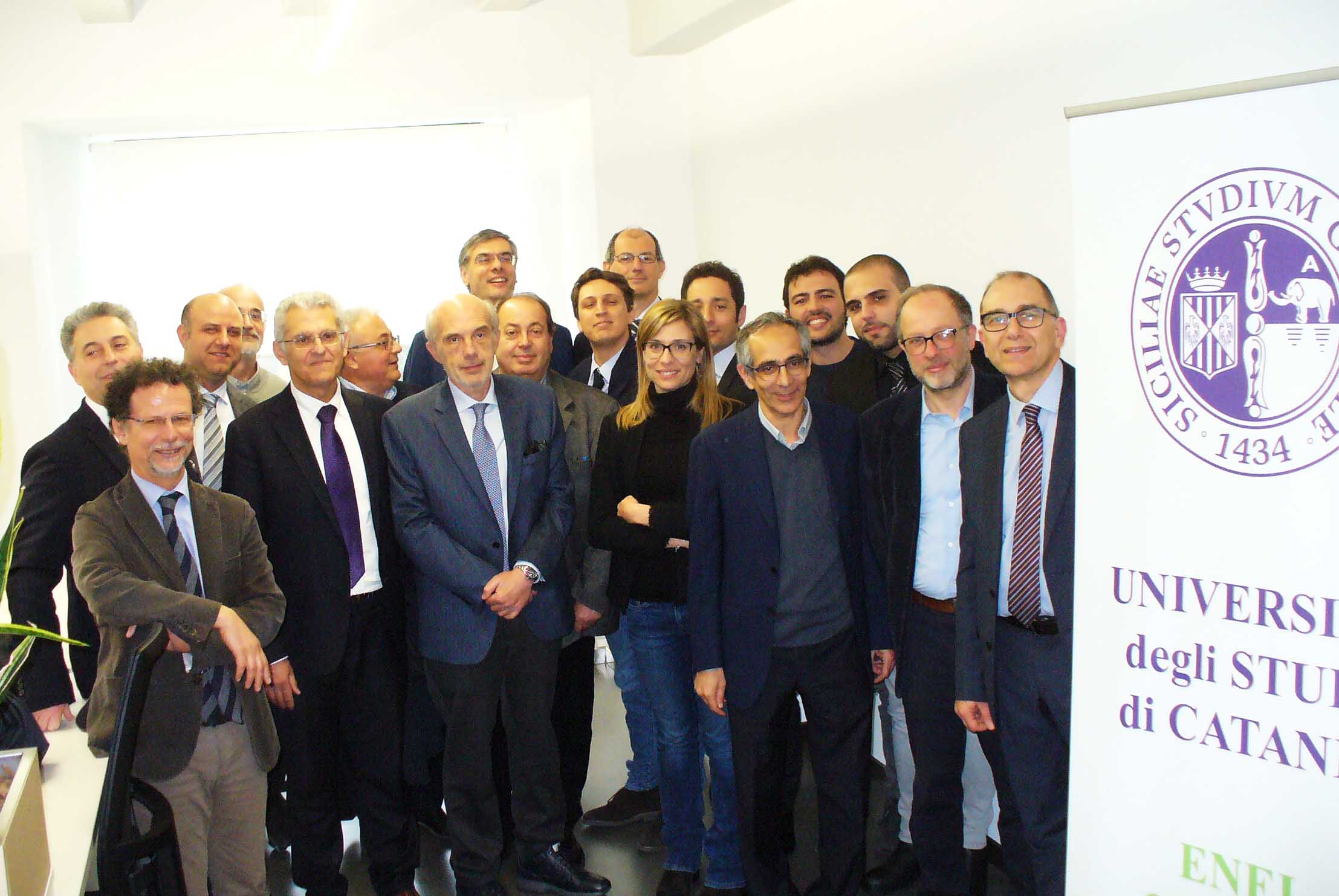 Presenti con il rettore, il direttore generale dell’Ateneo Candeloro Bellantoni, i direttori di dipartimento Giovanni Gallo (Matematica e Informatica), Giovanni Muscato (Ingegneria elettrica, elettronica e informatica), Francesco Priolo (Fisica e Astronomia) e numerosi docenti già impegnati in attività di collaborazione nel settore della ricerca, tra i quali il prof. Antonio Terrasi.
