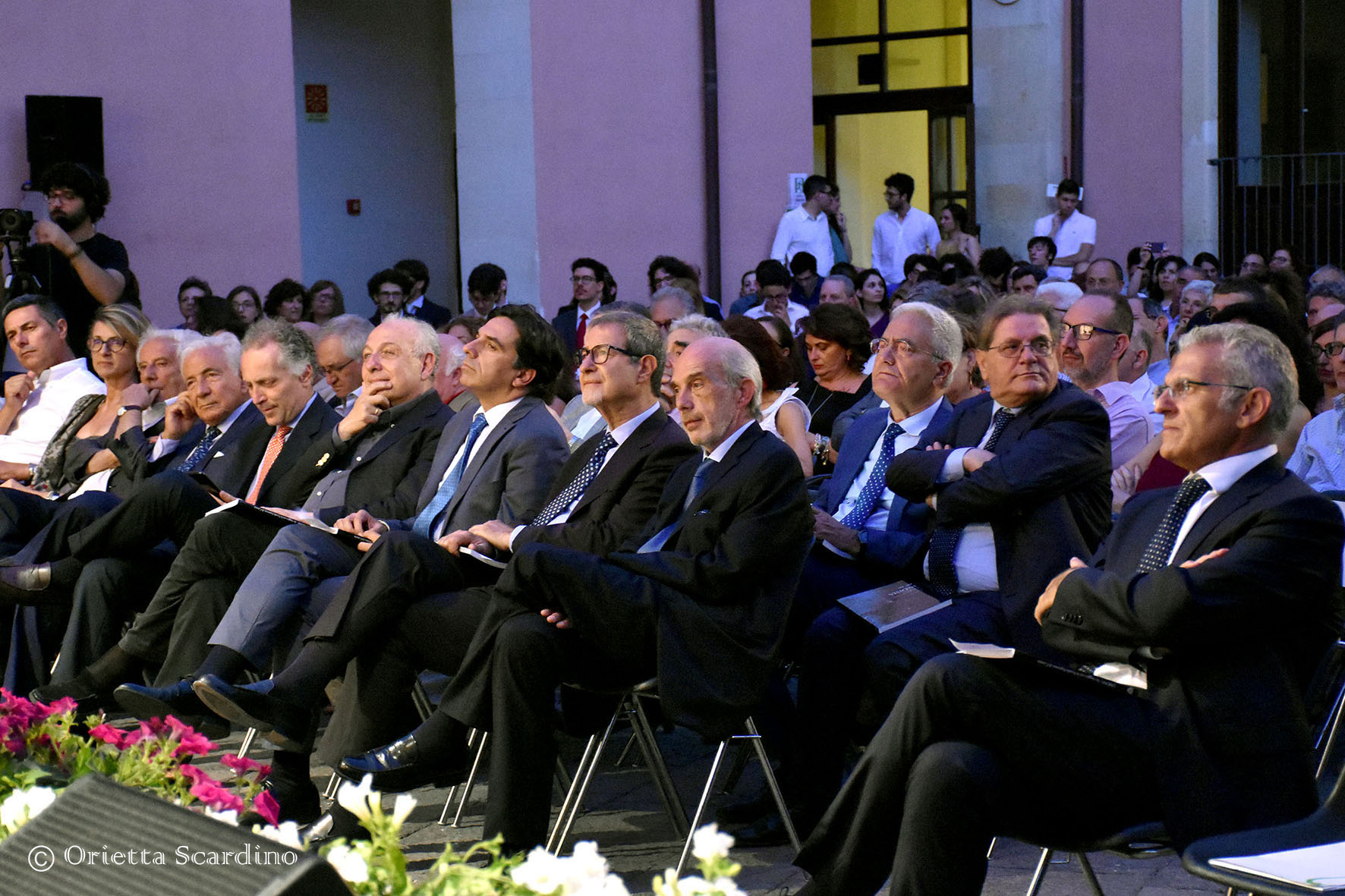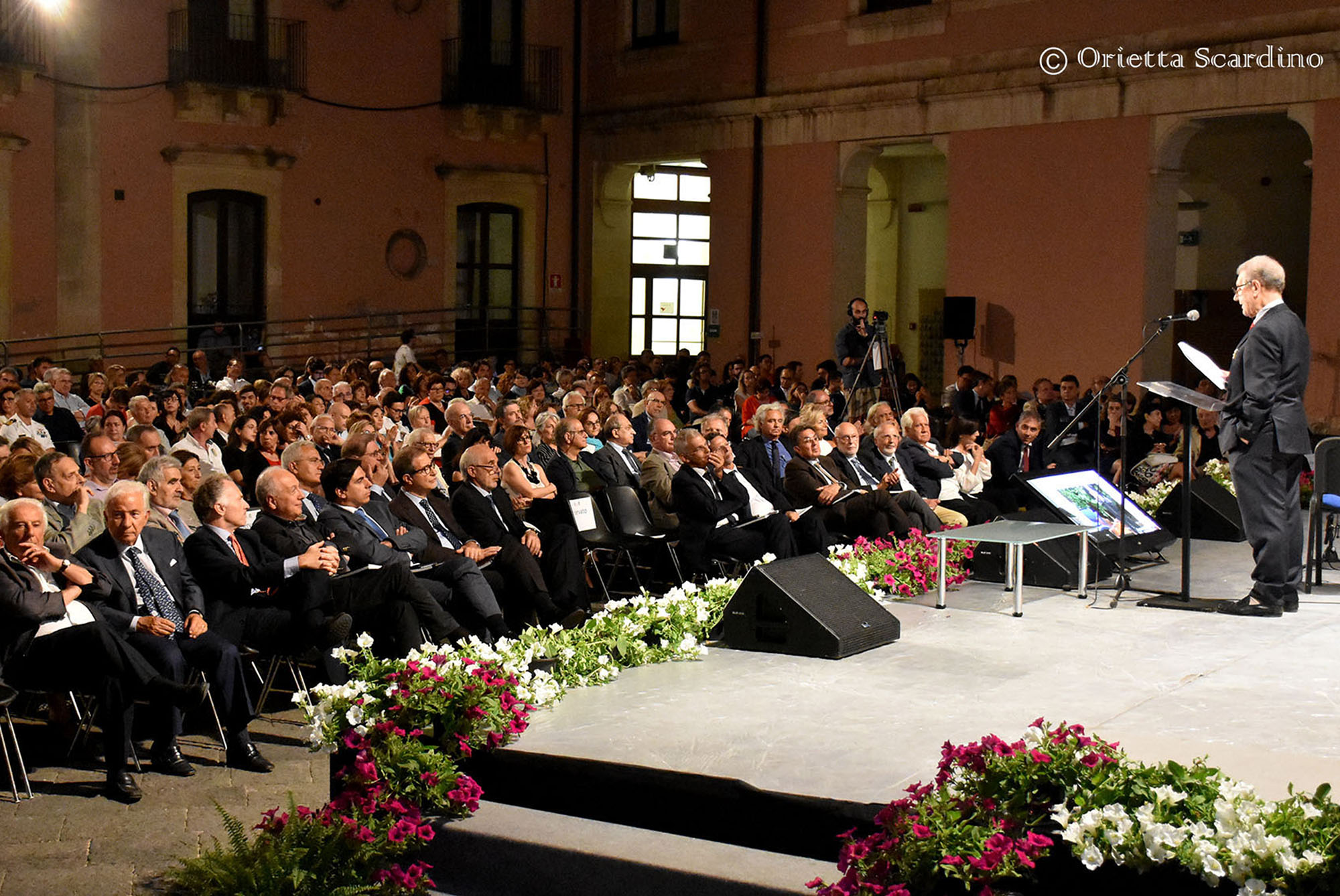 Prima della consegna delle pergamene di diploma ad undici allievi che hanno recentemente concluso il percorso di studi – Giulio Amara, Giovanni Antonio Cannetti, Filippo Contino, Dominic Genovese , Cristoforo Marco Grasso, Antonina Maria Mistretta, Giampaolo Pitruzzello, Domenica Raciti, Fabio Russo, Alessandro Sitta e Paola Tricomi -, è toccato all’ospite d’onore della serata, Salvatore Settis, proporre una densa riflessione sul Diritto alla Cultura, così come sancito dalla Costituzione italiana. «Sancito, ma molto spesso tradito o ignorato – ha osservato amaramente, citando in primis l’articolo 9 della Carta -. Come spesso avviene ci troviamo a dover constatare il divorzio tra l’affermazione teorica di principi e la negazione di questi stessi principi nella pratica delle risorse. Dati alla mano, l’Italia è tra i paesi europei che hanno più fortemente disinvestito in politiche culturali, e le ricadute si vedono soprattutto al Sud. Insomma, tutti a dire che la cultura (la scuola, l’università, la ricerca, il patrimonio culturale e ambientale…) è un asset strategico ma di fatto, da almeno vent’anni, è il primo oggetto dei tagli governativi».