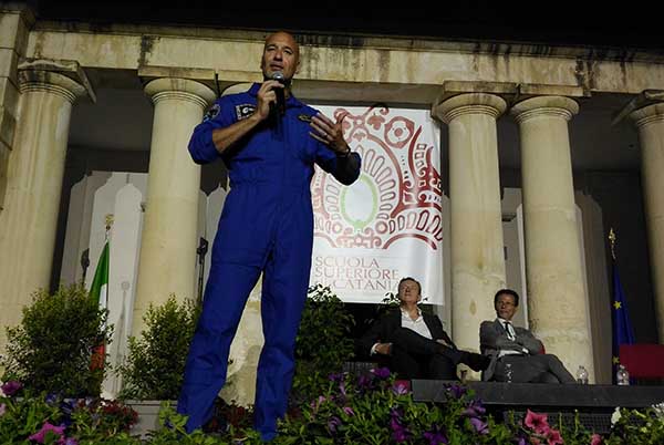L’incontro, dal significativo titolo “Viaggio nello spazio”, è stato promosso dalla Scuola e dall’Accademia Gioenia e ha alternato i suggestivi racconti delle “passeggiate spaziali” fatte da Parmitano – il primo italiano ad effettuare, nel 2013, le cosiddette attività extraveicolari intorno alla Stazione spaziale internazionale – all’elenco delle numerose iniziative italiane ed europee nel settore aerospaziale, puntualmente descritte dal presidente Battiston, che ha anche lasciato intravedere ai presenti lo scenario neanche tanto futuribile della “new space economy”, incentrato, oltre che sulla realizzazione di componenti per i missili o i satelliti, sulla commercializzazione dei dati che provengono dalle osservazioni degli stessi satelliti.
